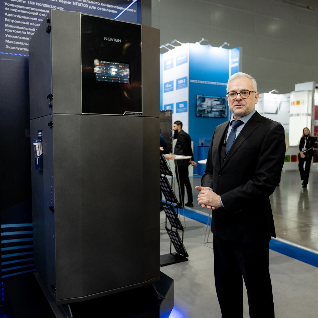Своим размахом и современным дизайном внимание посетителей привлек большой стенд компании Navien. Среди главных представленных новинок: новая модель одноконтурного напольного конденсационного котла Global Navien серии NFB700 для отопления (дисплей на русском языке, мощность 330 кВт, автоматика позволяет до 32 котлов объединять в один каскад, достигая таким образом мощности объекта 9 МВт); новая модель одноконтурного настенного конденсационного котла Global Navien серии NFB для отопления; одноконтурный конденсационный котел NCB500; обновленная серия настенных газовых двухконтурных котлов Navien Deluxe S Pro.